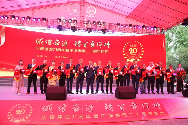 首先由仟坤集團董事長謝世千登臺為集團20年優(yōu)秀員工頒發(fā)了20年貢獻獎榮譽證書和仟坤20周年銀質(zhì)紀念獎牌,并且進行了合影留念,現(xiàn)場掌聲雷動,歡呼聲絡(luò)繹不絕。集團董事何述林作為獲獎代表與在場嘉賓分享了自己與集團發(fā)展的故事。