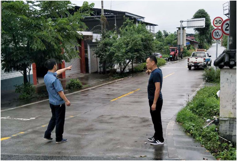 (市運管所股長鄧銳查看東普村路段路面情況)