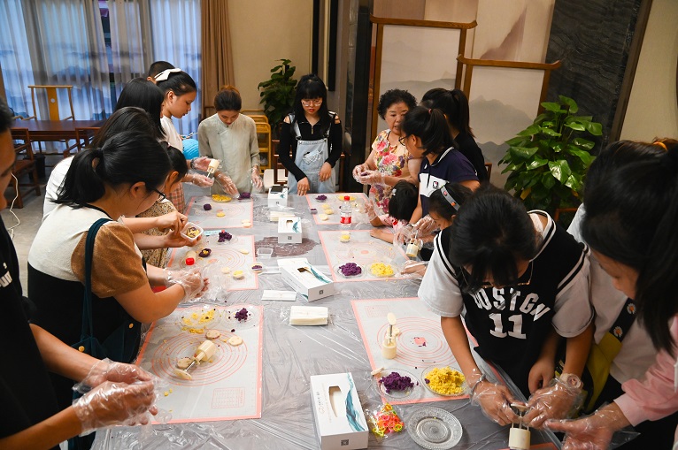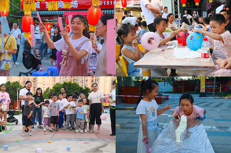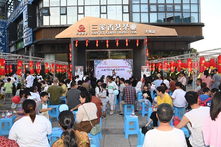 隨著主持人宣布活動正式開始,現(xiàn)場氣氛被瞬間點燃,鮮紅的燈籠下吸引了大批燈謎愛好者駐足猜燈謎。游園活動現(xiàn)場更成了小朋友們的樂園,吹乒乓、套圈、DIY中秋燈籠好不熱鬧。三溪香茗天悅店里又是一番景象,家長們領(lǐng)著自家小朋友做著手工月餅和冷飲,一片溫馨祥和。