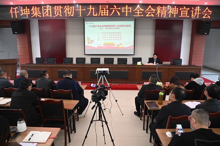 為深入學習貫徹黨的十九屆六中全會精神,進一步深刻領會全會精神的豐富內(nèi)涵和核心要義。12月1日上午,仟坤集團組織召開學習貫徹十九屆六中全會精神宣講會,特邀請到德陽市二級巡視員張興鴻專題授課。德陽市委組織部四級調(diào)研員、組織四科科長莫檸綪,綿竹市委組織部“兩新”工委專職副書記王興平,綿竹高新區(qū)黨群工作部副部長黃銳,集團黨建指導員張英到會指導工作,集團董事長謝世千、總裁謝澤波以及集團黨委委員、全體黨員和中高層管理人員近200余人參與學習。會議由集團黨委書記、副總裁周述軍主持。