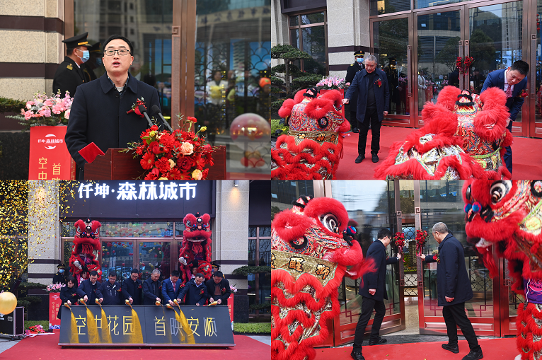 舞蹈《瑞獅鳴潮》拉開(kāi)亮相儀式序幕,激昂的鼓點(diǎn)歡快的節(jié)奏將現(xiàn)場(chǎng)的氛圍點(diǎn)燃,寒冷的天氣也阻擋不了現(xiàn)場(chǎng)嘉賓的熱情。集團(tuán)黨委書(shū)記、副總裁周述軍致辭之后,集團(tuán)董事何述林和黎小東總經(jīng)理手持朱砂毛筆為舞獅點(diǎn)睛,寓意祥和旺財(cái)、點(diǎn)石成金?,F(xiàn)場(chǎng)嘉賓將鎏金倒向牌匾“空中花園 首映安順”赫然出現(xiàn),嘉賓伴隨著舞獅進(jìn)入森林城市銷售中心,華麗的展廳內(nèi)全景沙盤(pán)映入眼簾,銷售經(jīng)理做著介紹,參觀的嘉賓絡(luò)繹不絕現(xiàn)場(chǎng)好不熱鬧...