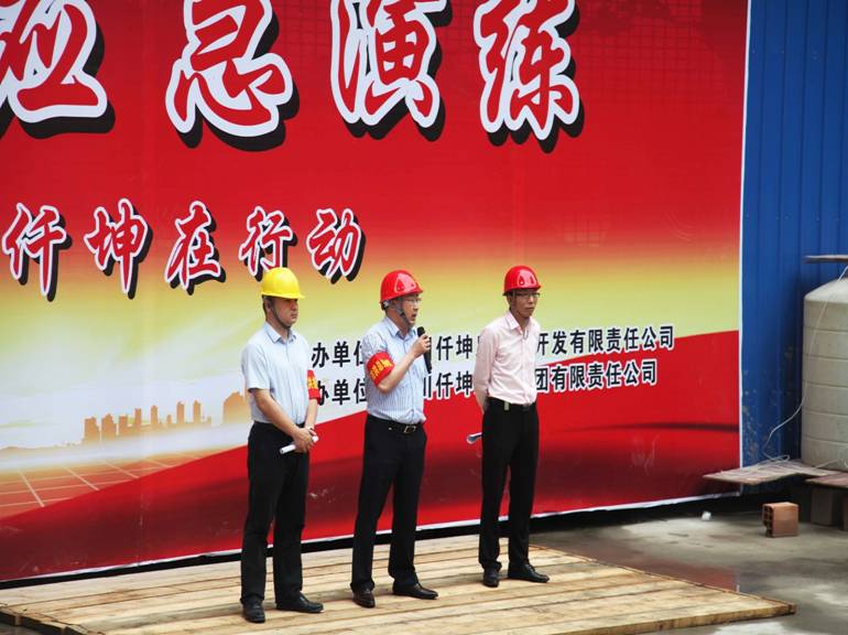 上午10:00分,在“仟坤-天朗”項(xiàng)目施工現(xiàn)場(chǎng),一場(chǎng)別開生面的防汛搶險(xiǎn)應(yīng)急演練正在進(jìn)行中,演練模擬綿竹突降暴雨,造成建筑工地大面積積水,部分裝備被淹。防汛搶險(xiǎn)小組“聞汛”而動(dòng),第一時(shí)間趕到事故現(xiàn)場(chǎng),隨即開展救援工作,首先將傷員搶救出來(lái)并轉(zhuǎn)移到安全地帶,臨時(shí)用電搶險(xiǎn)組斷開電路,然后用大功率抽水機(jī)排水,并用沙袋截住坑基上的側(cè)洪水,經(jīng)過(guò)半個(gè)小時(shí)的艱苦奮戰(zhàn),險(xiǎn)情被完全控制,演練結(jié)束。