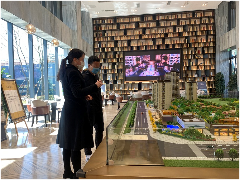 仟坤房產(chǎn)的置業(yè)顧問黃靚,正在仟坤水街售樓大廳里準備資料。迎接您的到來。
