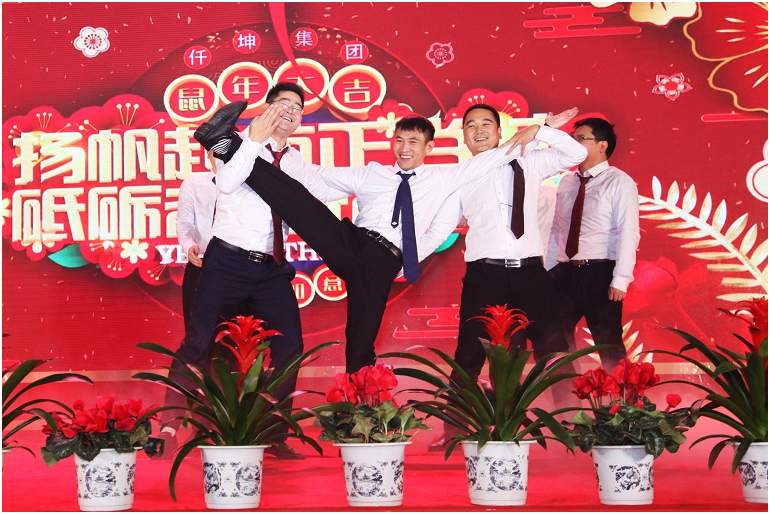 總結(jié)大會結(jié)束后,仟坤集團(tuán)首屆年會也正式拉開帷幕,進(jìn)入會場前,禮儀小姐為來賓獻(xiàn)上印有仟坤logo的紅色圍巾,簽名墻前的來賓有說有笑,現(xiàn)場氣氛歡樂祥和。在一陣歡快的燈光秀后,年會正式開始。今年年會的所有節(jié)目,都是由集團(tuán)的職工精心編排,從基層車間技術(shù)工人到分公司總經(jīng)理、集團(tuán)總裁都登臺表演,是一場全民聯(lián)歡、密切職工與領(lǐng)導(dǎo)關(guān)系、拉近心與心的距離的年會,節(jié)目內(nèi)容豐富多彩、妙趣橫生。中途穿插幸運(yùn)抽獎,現(xiàn)金紅包、帶薪假券、禮品盒等豐富的獎項,將現(xiàn)場氛圍推向高潮。臨近年會尾聲董事長帶領(lǐng)集團(tuán)管理層,為全體員工送上了新春最美好的祝愿,全場一片掌聲和歡呼。