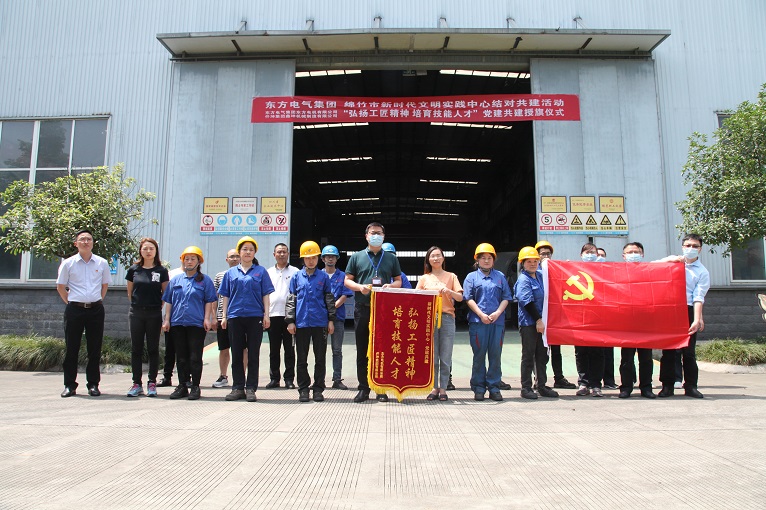 下午2:30分,東方電氣集團柯部長一行先后參觀了集團陳列室、鑫坤機械三大主車間和集團黨群活動中心,并在鑫坤機械重型加工車間進行了“弘揚工匠精神、培育技能人才”授旗儀式。在接下來的簽約儀式上,綿竹市宣傳部副部長、市新時代文明實踐中心辦公室副主任、市社科聯(lián)主席劉薇介紹了新時代文明實踐活動背景,并指出通過共建活動,要做到彼此促進、優(yōu)勢互補、資源共享,不斷增強共建雙方黨支部的創(chuàng)造力、凝聚力、戰(zhàn)斗力,努力提升黨建工作科學(xué)化水平。集團黨委書記、副總裁周述軍就集團黨建工作發(fā)展歷程、“323”黨建工作模式以黨委成立以來所取得的成績向與會人員進行了簡單的介紹。
