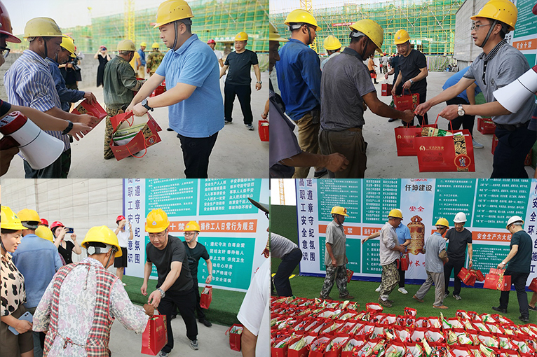 夏日驕陽似火,建筑工地更是熱浪滾滾,為使廣大職工度過一個(gè)安全、健康、衛(wèi)生、清涼的夏季。8月10日上午,仟坤集團(tuán)總裁謝澤波,集團(tuán)常務(wù)副總裁葉金春,集團(tuán)黨委書記、副總裁周述軍,集團(tuán)副總裁趙新強(qiáng)來到仟坤水街和仟坤天璽項(xiàng)目工地看望仟坤建設(shè)的一線建筑工人。